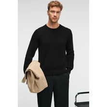 Grimelange CABLIN Erkek Yuvarlak Yaka Regular Fit Triko Siyah Kazak