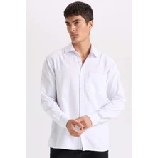 DeFacto %100 Pamuk Regular Fit Pamuklu Basic Düz Keten Görünümlü Uzun Kollu Beyaz Gömlek D7079AX24SP