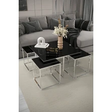 Home Plus Mobilya 4+1 Gümüş Kaplama Siyah Ayna Orta Sehpa
