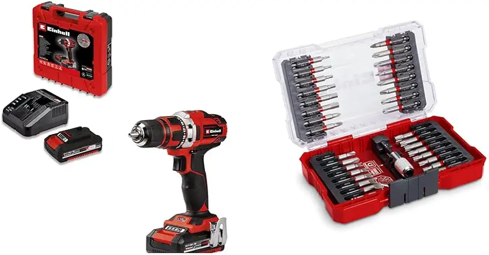Einhell TE-CD 18/40-1 Li (2x2,0 Ah), Akülü Vidalama + Einhell Vidalama uç seti 33 parça, M-CASE kutu