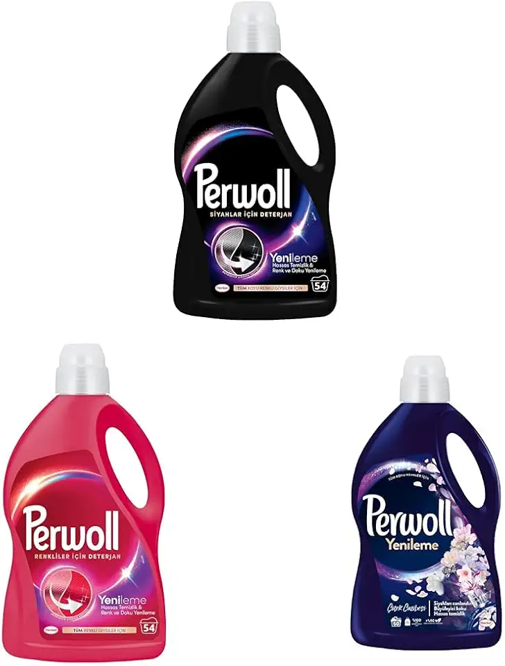 Perwoll Hassas Sıvı Çamaşır Deterjanı Yenileme & Çiçek Cazibesi 2.75L (50 Yıkama) ve Perwoll Yenileme Siyahlar için Sıvı Deterjan 54 Yıkama 2.97 Lt
