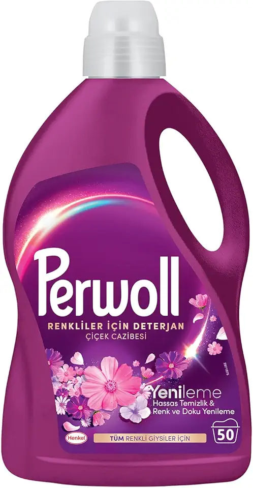 Perwoll Geliştirilmiş Renkli Sıvı Çamaşır Detarjanı 2970 ml ve Perwoll Hassas Sıvı Çamaşır Deterjanı Yenileme & Çiçek Cazibesi 2.75L (50 Yıkama)