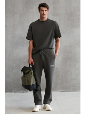 Grimelange Freddy Erkek Regular Fit Yumuşacık Kumaşlı Baskılı 3 Cepli Koyu Gri Eşofman Altı