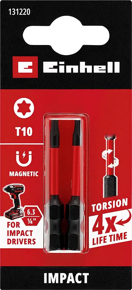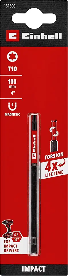 Orijinal Einhell Darbeli Bit, 100 mm, T10 (S2 Çelik, Torsiyon Bölgesi, Verimli Güç Aktarımı, Kırmızı Renk Halkası, E 6.3 Sap) - 49131300