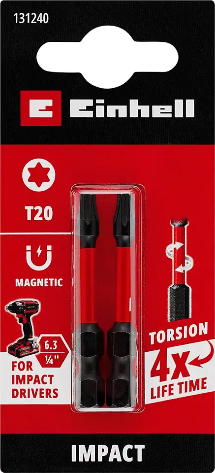 Orijinal Einhell Darbeli Bit Seti, 2 Parça, 50 mm, T20 (S2 Çelik, Torsiyon Bölgesi, Verimli Güç Aktarımı, Kırmızı Renk Halkası, E 6.3 Sap) - 49131240